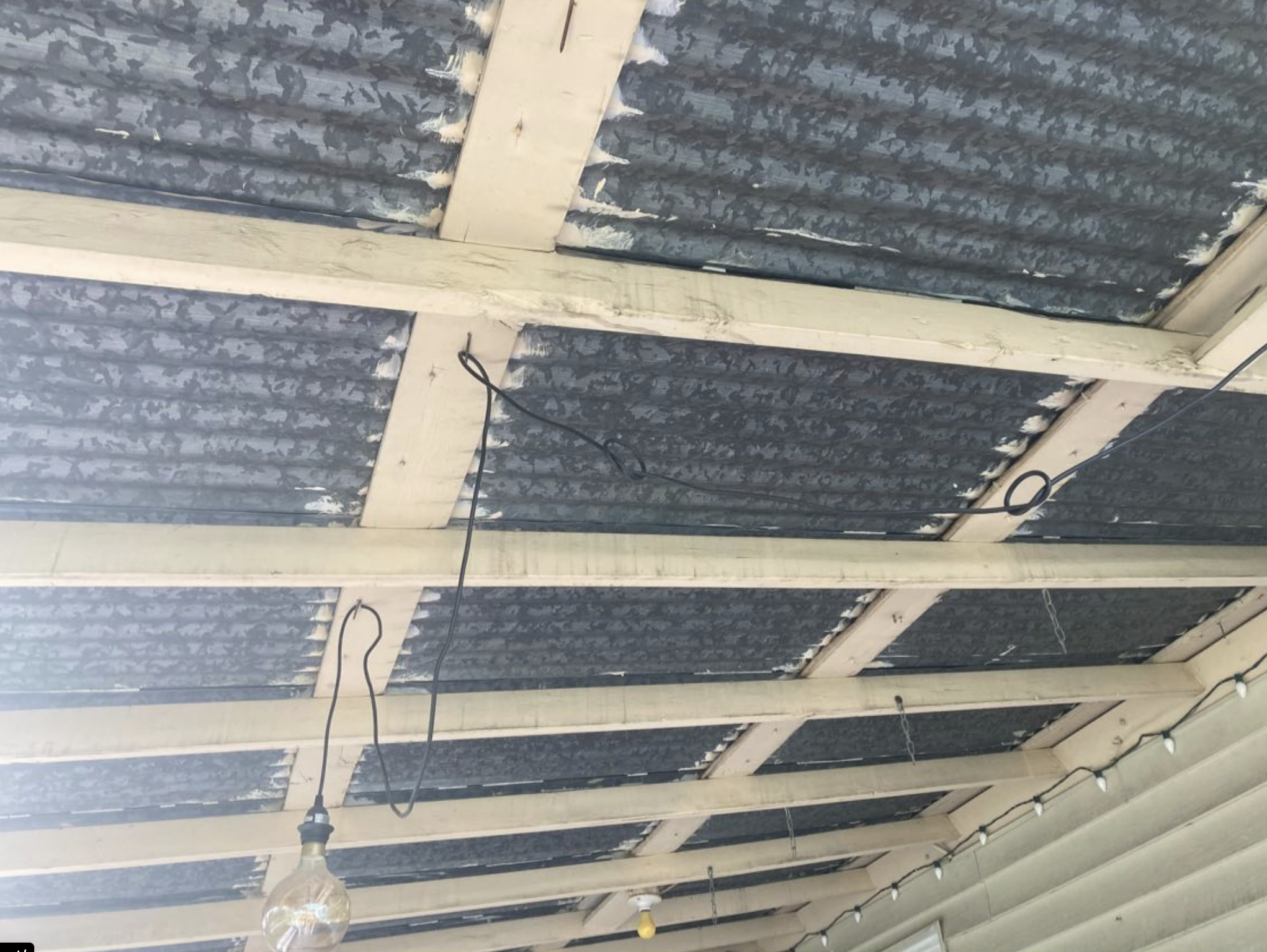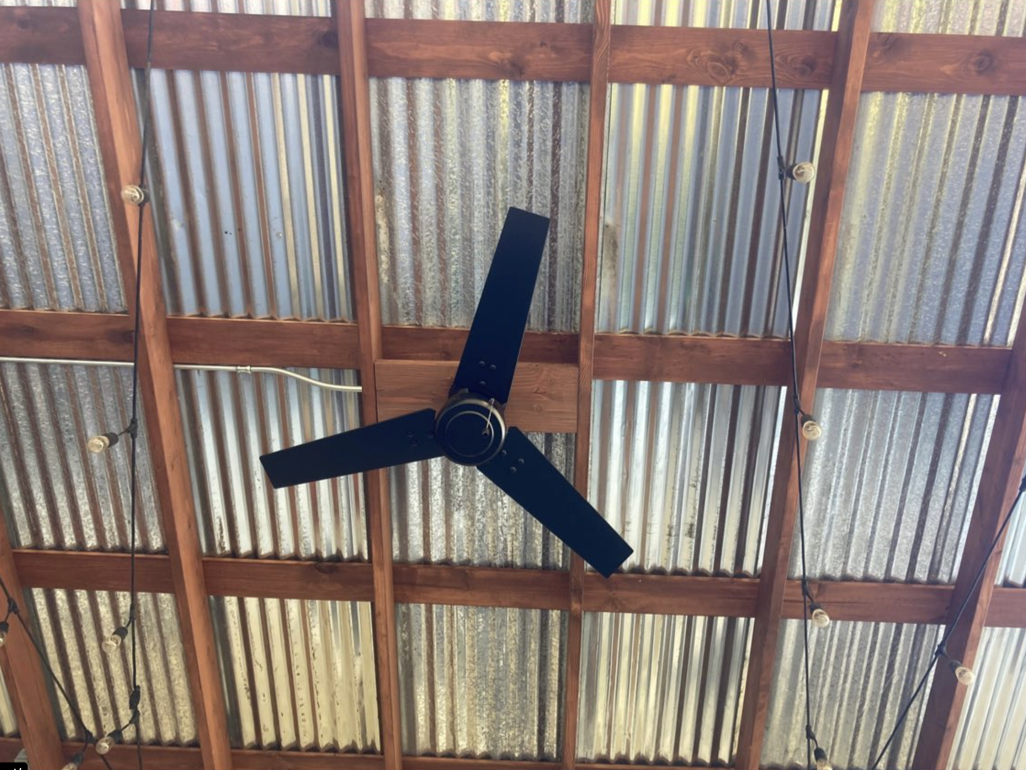 Patio roof rebuild, all new roofing, joists, ledger board. Installed fan, permanent electrical.